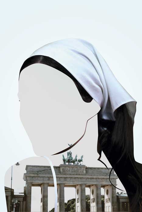 La estética de la serie destaca por su sobriedad brillante: recortes limpios, contrastes precisos y una composición que recuerda a los fotomontajes vanguardistas del siglo XX, reinterpretados con sensibilidad contemporánea. La ausencia del rostro abre un espacio narrativo que el espectador completa, reconstruyendo mentalmente aquello que no se muestra.