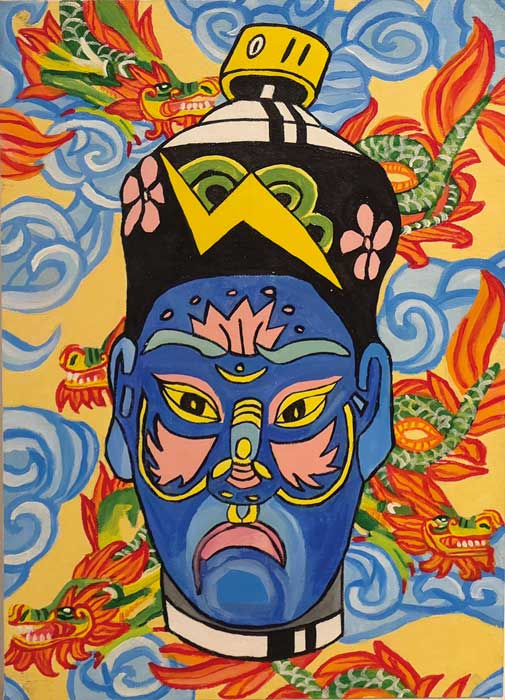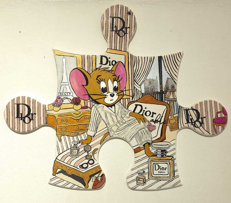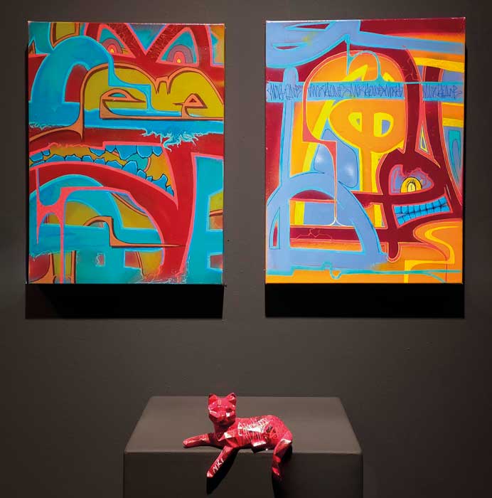 Ángela Thouless mezcla la estética pop, el lenguaje del cómic y una relectura vibrante de la iconografía tradicional asiática. Son cuadros llenos de humor realizados con una paleta de colores mesuradamente apastelados. Estas piezas invitan a un diálogo sobre el simbolismo cultural y la permanencia de lo ancestral en el arte de nuestros días.