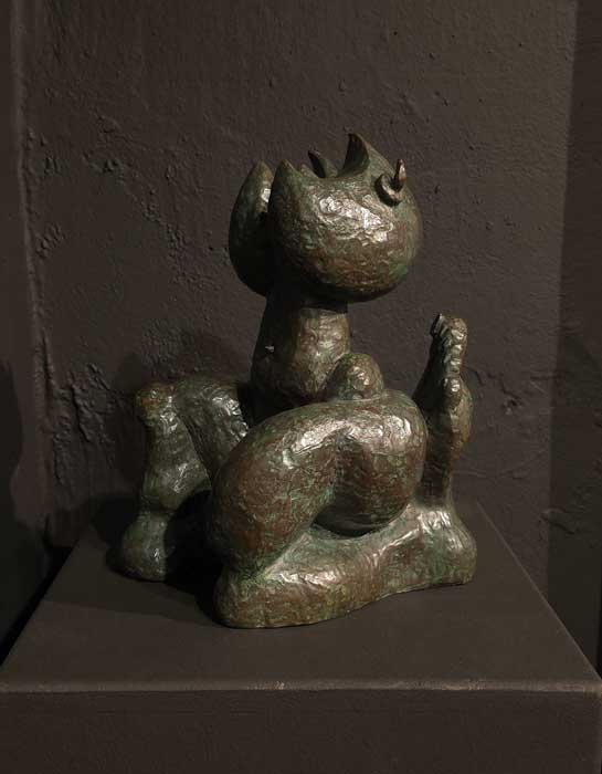 En la escultura en bronce Totem hermafrodita, presentada por Alfredo Laporta, toma forma una reflexión sobre la dualidad y la coexistencia de los opuestos: lo humano y lo animal, lo masculino y lo femenino. La entidad representada, en su condición de tótem, resulta fluida y múltiple.