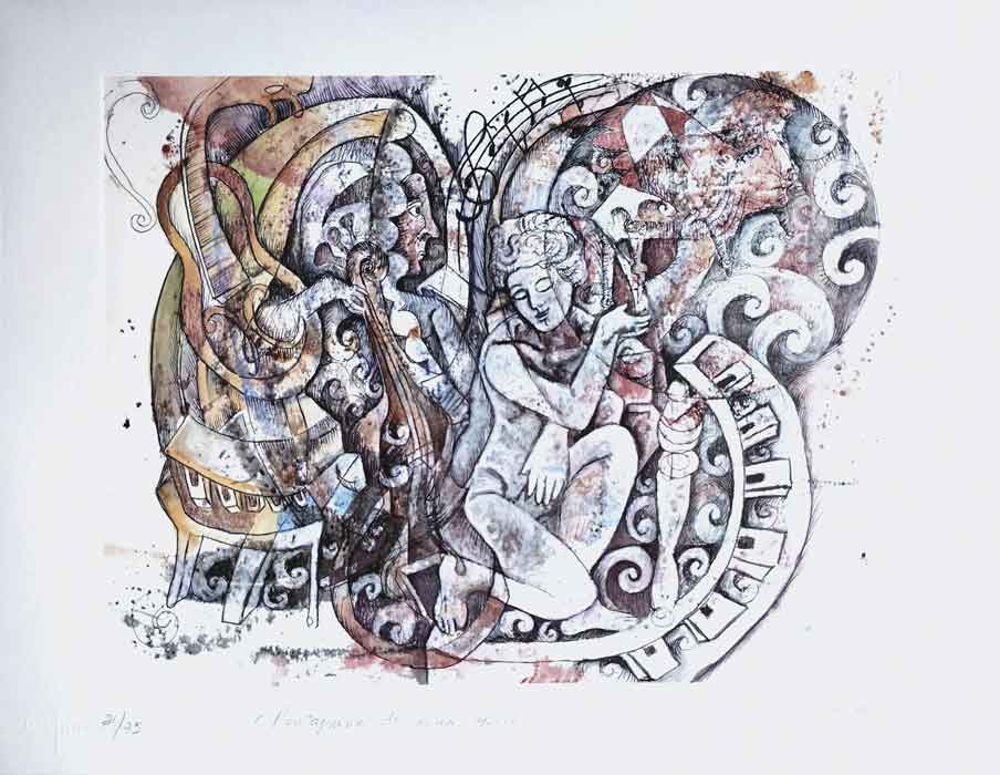 Felipe Alarcón Echenique. Pentagrama de una sinfonía. De la serie: Beethoven. Litografía. 30 x 40 cm / 2020