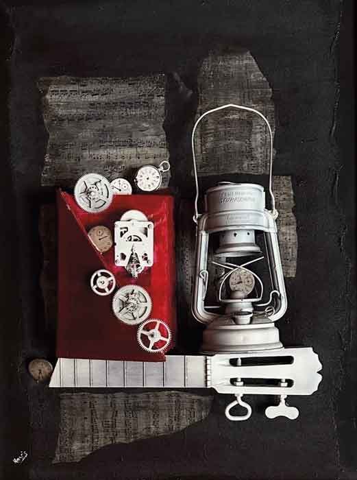 Los engranajes aquí presentes, como las esferas de reloj y las ruedas dentadas, son elementos que aluden tanto al tiempo musical como a la precisión mecánica del ritmo. Esta pieza encarna una reflexión estética y conceptual sobre el fenómeno musical. La música está presente mediante su huella física, como si el lenguaje musical también estuviera sujeto al deterioro. La obra parece decirnos que el sonido, aunque sea temporal y etéreo, también necesita de la materia para no quedar en el olvido.