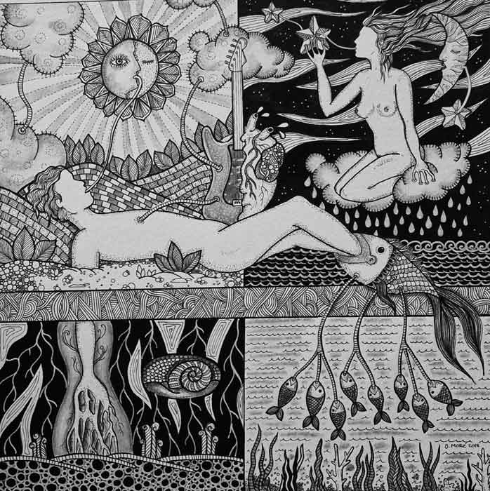 La obra de Ovidio Moré posee intrincadas y oníricas imágenes, que pueden ser leídas como metáforas visuales de la experiencia musical en su dimensión más sensorial, psíquica y orgánica.