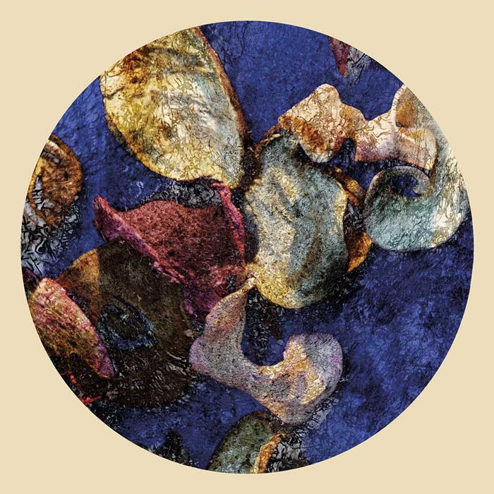 El azul profundo del fondo funciona como un pedal tonal, una base armónica sobre la que se desarrolla el motivo principal. Esta equivalencia entre color y sonido encuentra un eco histórico en teorías sinestésicas de Kandinsky pero en este caso, la fusión entre lo musical y lo plástico se manifiesta a través de una sensibilidad contemporánea y tecnológica que resume la impresión digital.