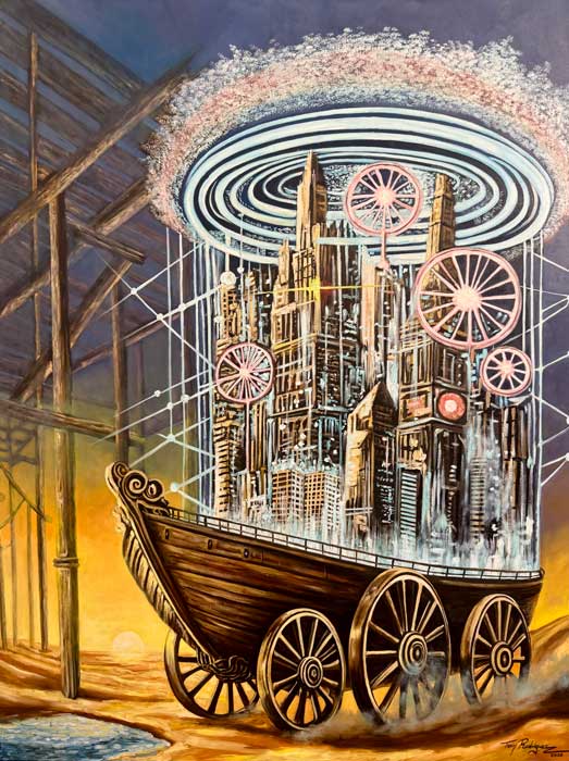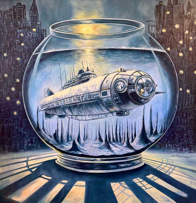 Tony Rodriguez no pinta paisajes, sino estados de vigilia. Su técnica rigurosa, en diálogo con la gran tradición surrealista, se une a una sensibilidad profundamente contemporánea y universal. Sus obras nos invitan a habitar la irrealidad, a perdernos en los detalles y a aceptar que el infinito —en su pintura— siempre puede ser contenido en una forma frágil, sostenida idealmente en la palma de una mano. ■